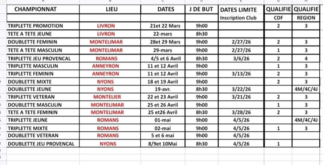 CALENDRIER CONCOURS CLUB
